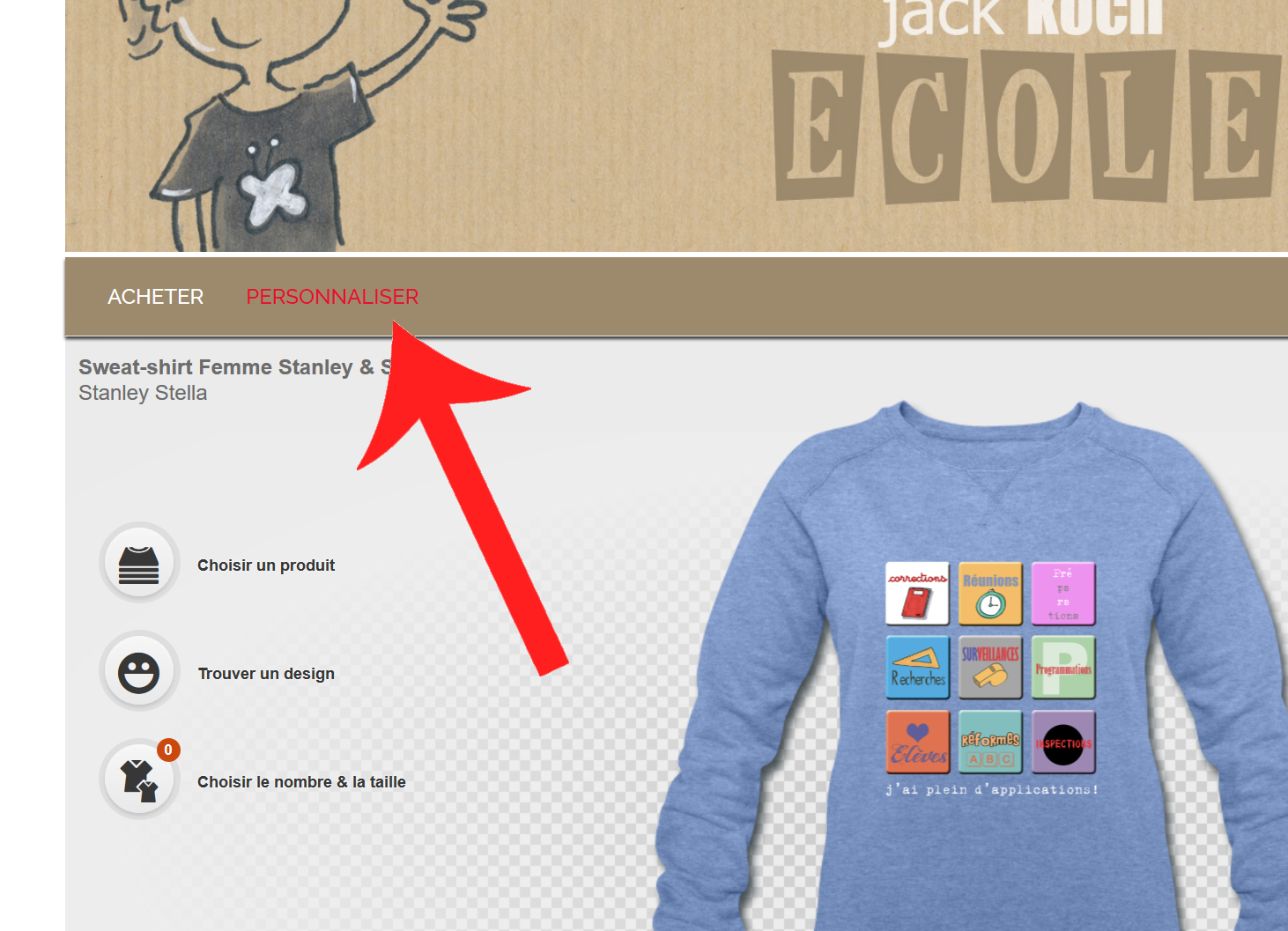 Suivre le lien vers la boutique et cliquer sur "personnaliser".